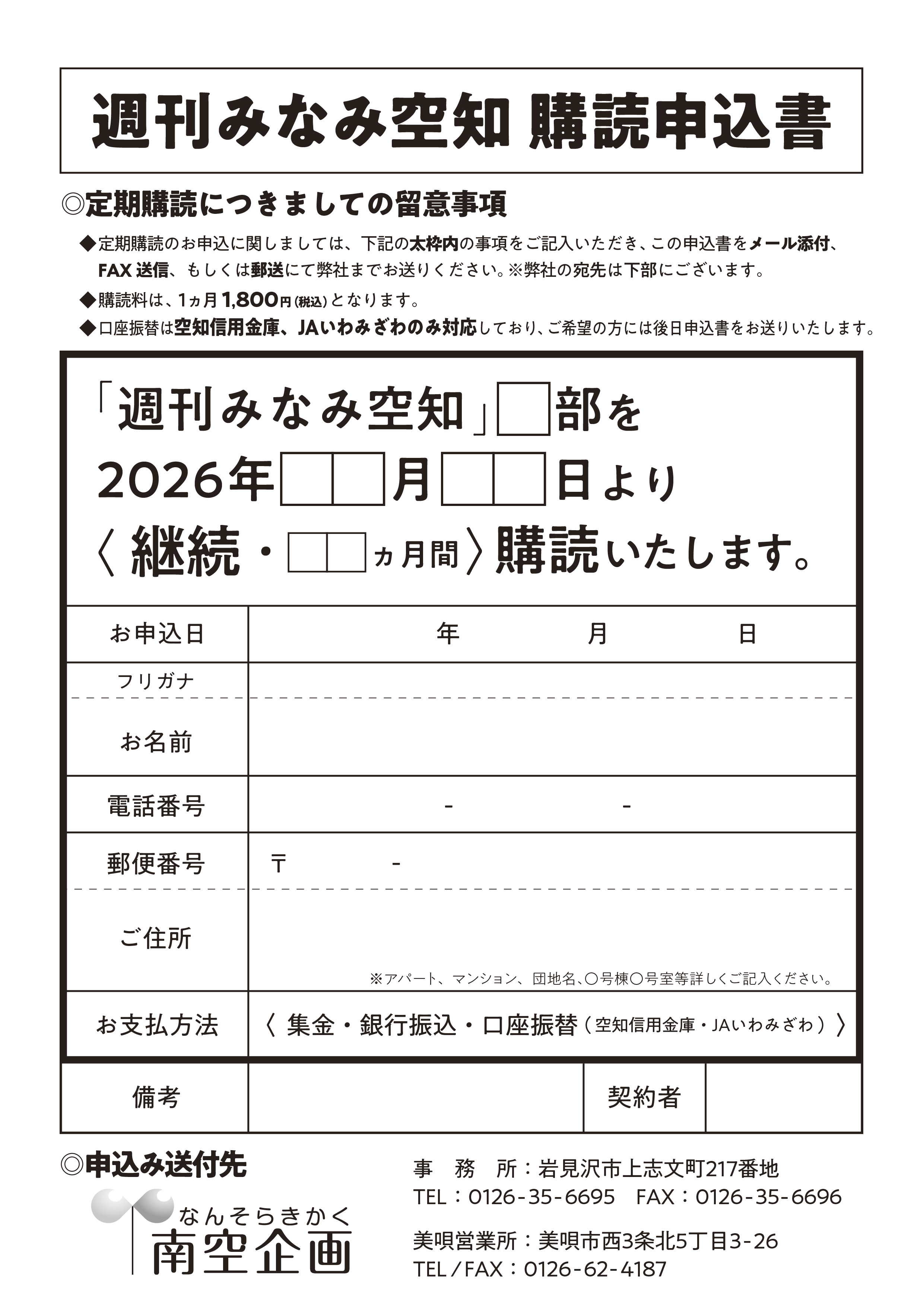 情報紙『週刊みなみ空知』は毎週土曜日に絶賛発行中!