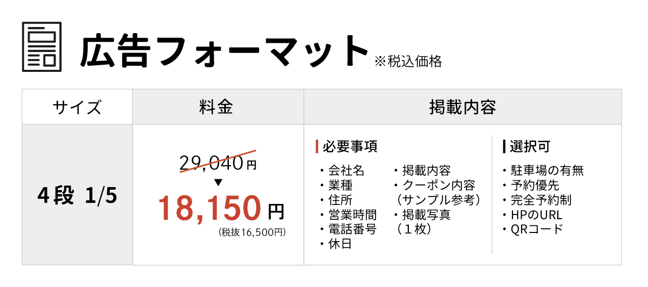 ご予算やご希望の掲載サイズなどに応じた広告枠をご提案いたします。 -