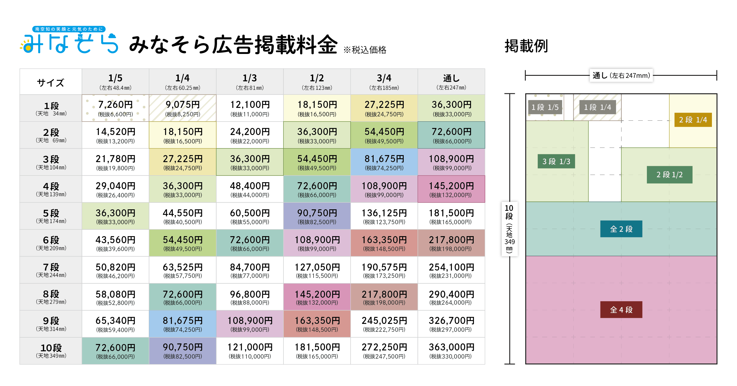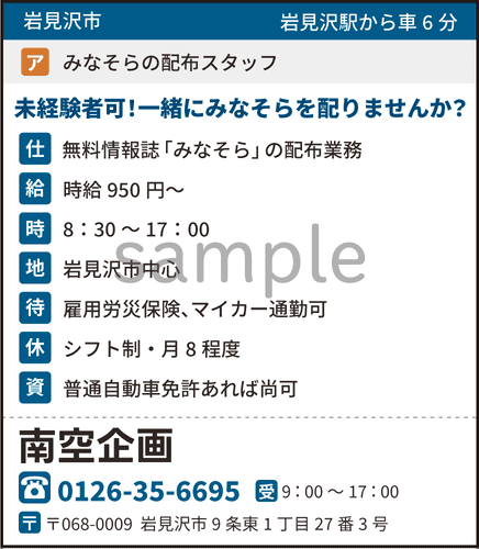 ※サイズが大きいものについてはご相談ください※実施日はみなそら本誌発行日に限ります 申込書が必要な方はこちら