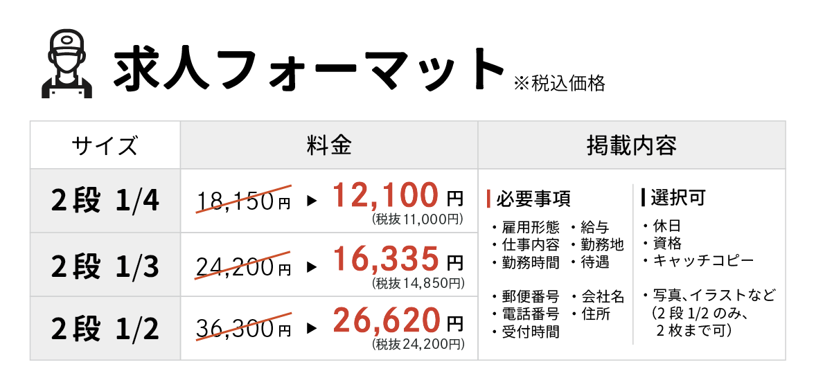 - 通常料金よりもお安く求人募集を掲載することができます